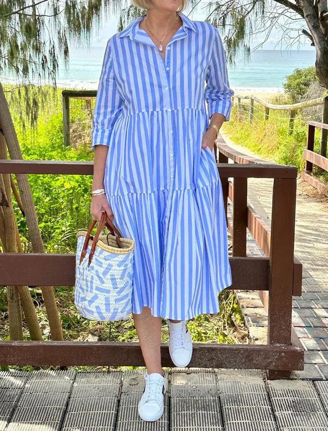 Remina Losse gestreepte overhemdjurk tot op de knie
